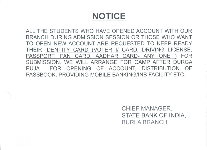 Notice for the list with roll number for the newly admitted students of VSSUT |